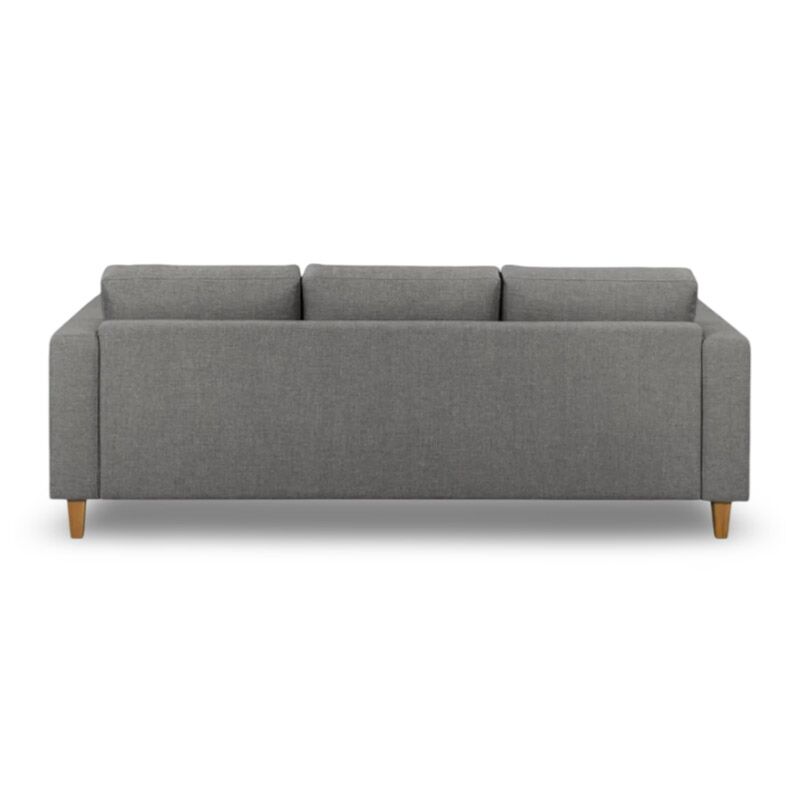 This piece features clean modern lines with a comfy loose seat with a slim tight back. Her sculptural profile is defined by her curved back and sloped arm.