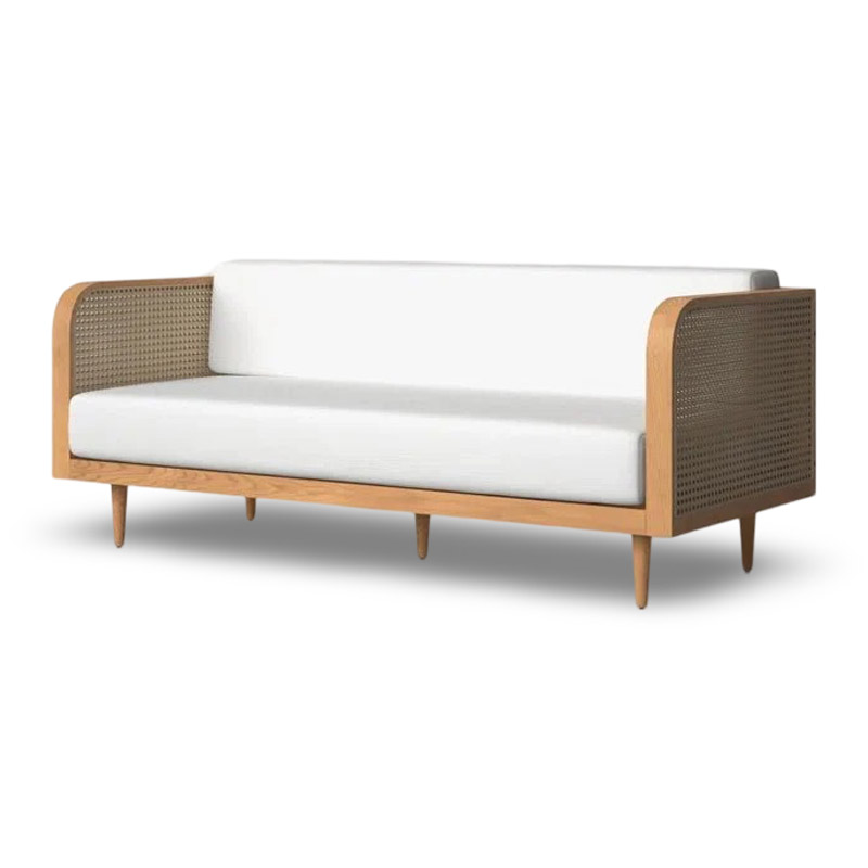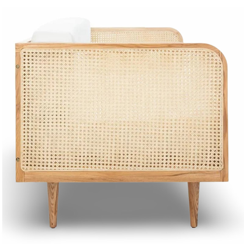 A Scandinavian inspired, solid hard wood frame with hand-woven cane creates a refined, modern retreat. A tufted cotton mattress comes standard with this daybed.