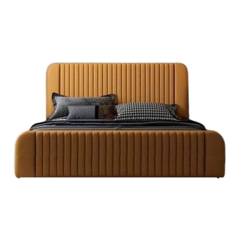 This bed is crafted from solid wood and Birch plywood, ensuring durability and strength. It features a sleek melamine finish for a smooth, refined look. The fluted headboard adds texture and elegance, while the sturdy metal legs provide a modern contrast and enhanced stability.