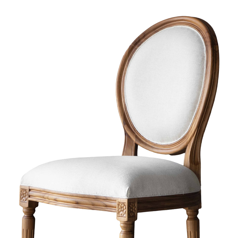 The dining chair features a rustic wood finish that enhances its artisanal craftsmanship, while the plush cushions on the back and seat provide a welcoming layer of comfort.