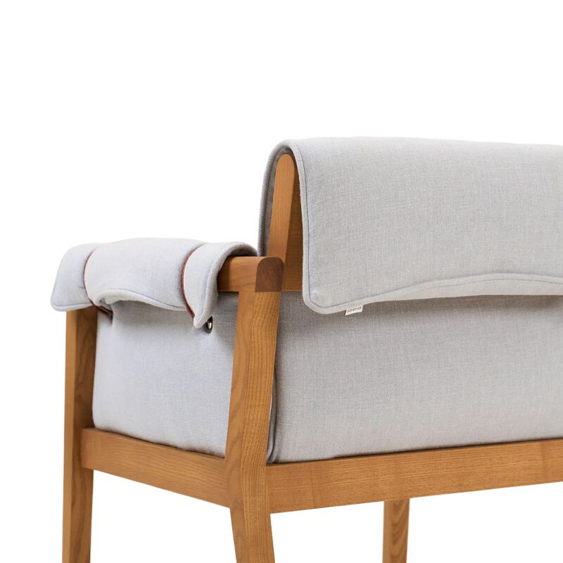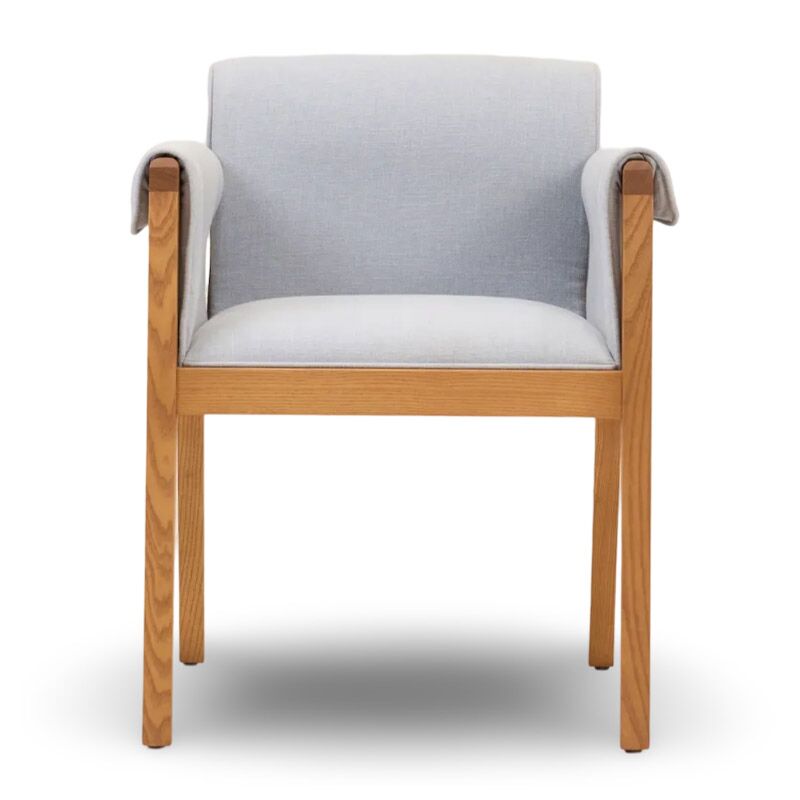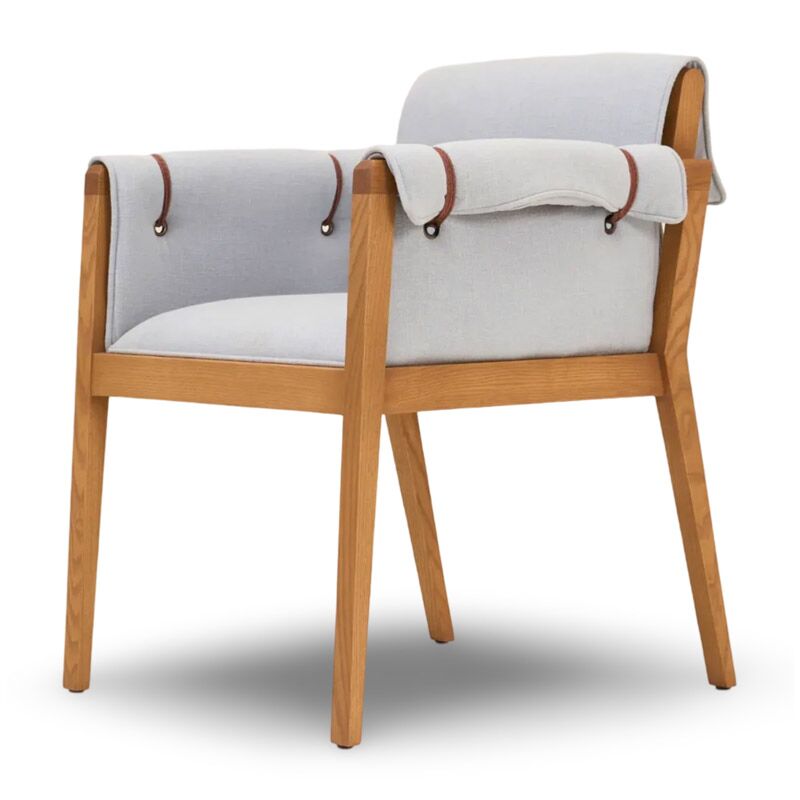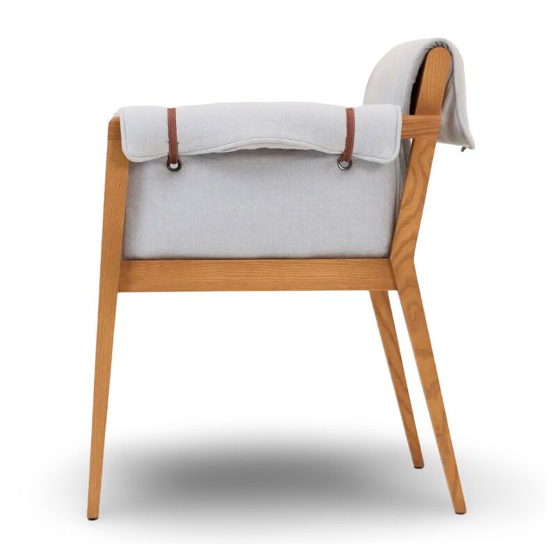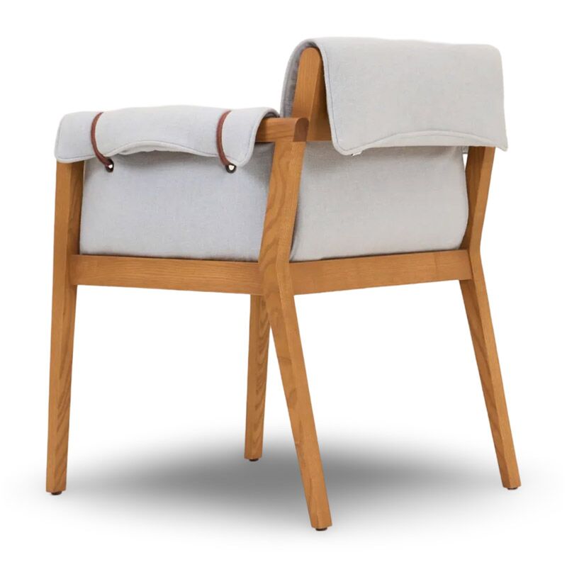 The dining chair, constructed from solid wood and finished with a melamine polish, features an exterior enhanced by foam and upholstery, customized to your selected preference.