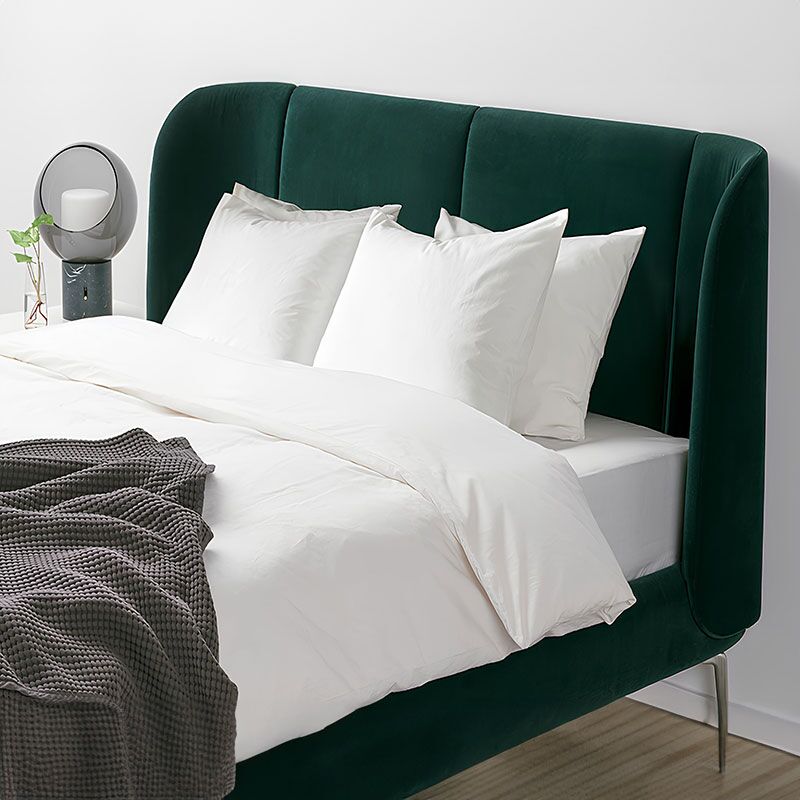 The upholstery for this bed has a perfect fit all around the bed, making it pleasing to look at from all angles and great to position in the center of a room .Also the curved headboard is great for cozy, cocooning moments, helping you to unwind and relax in bed.