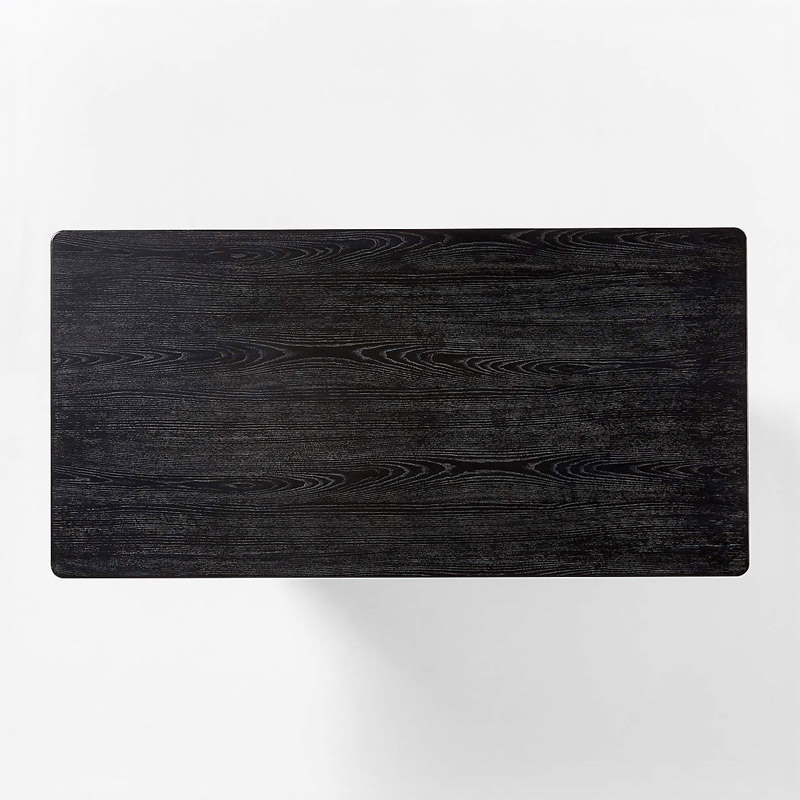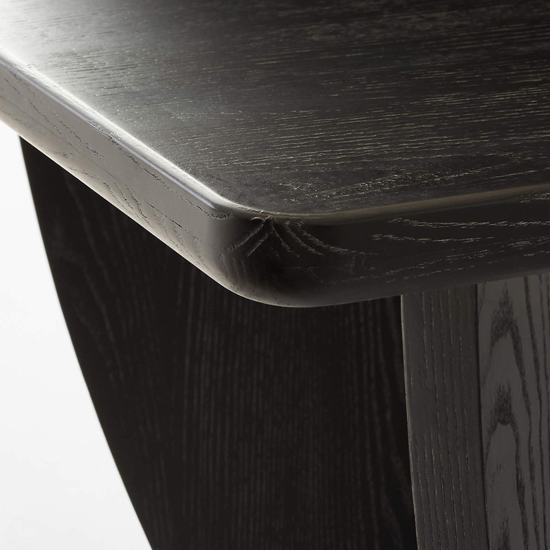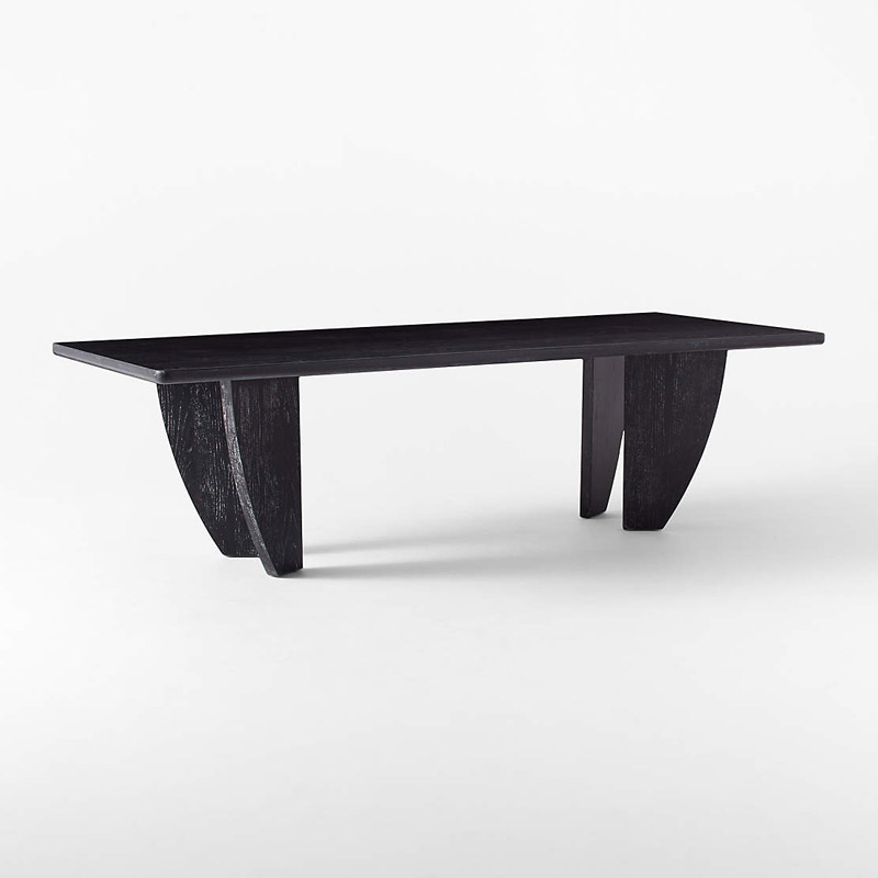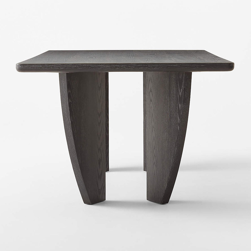 The Dining Table exemplifies serene elegance, distinguished by its clean lines. The wood showcases a varied grain pattern and natural knots, creating a striking visual impact.