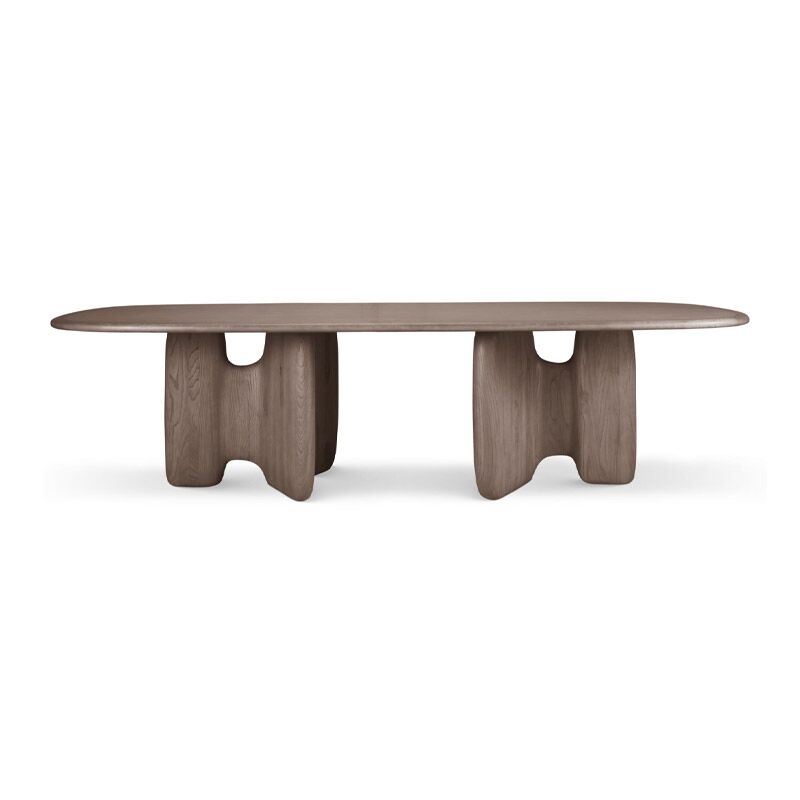 The Dining Table radiates a serene elegance, showcasing a unique tripod design for its legs.