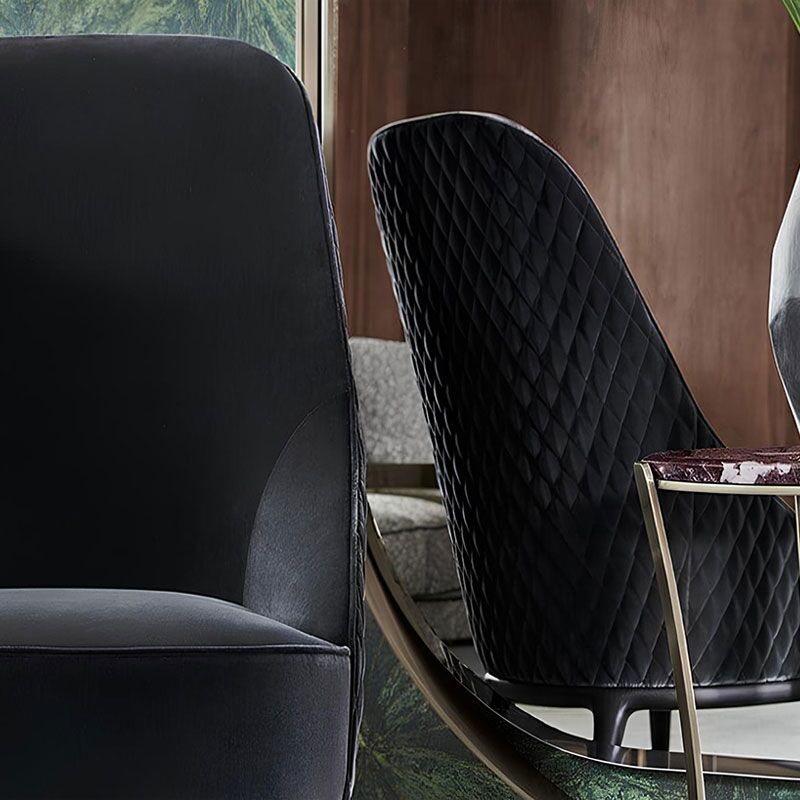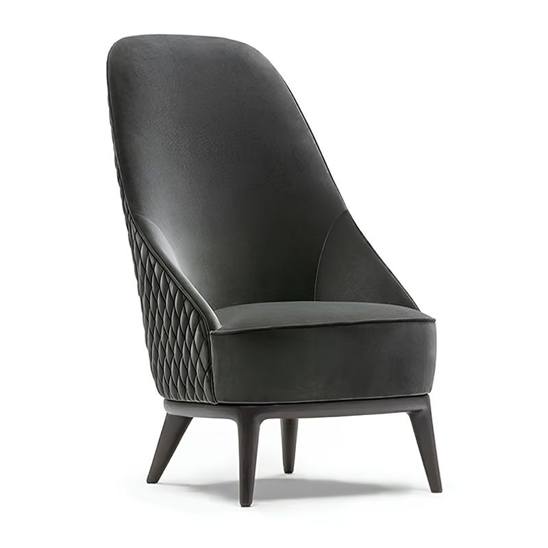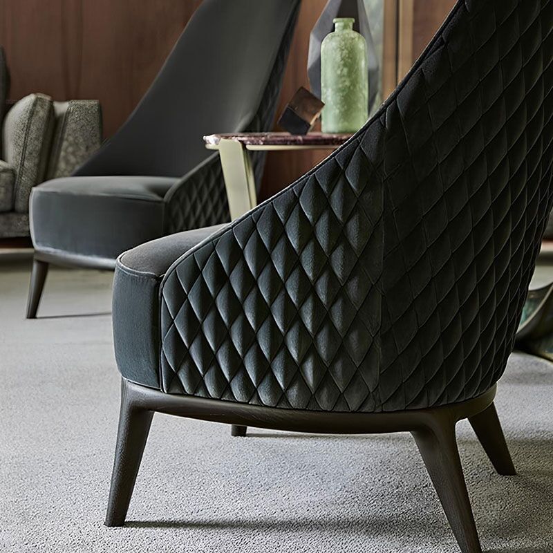 Comfortable and functional, the Leslie armchair is ideal for modern spaces. This beautiful chair with smooth or diamond-shaped shell, padded in rubber with wooden legs, available in different finishes.