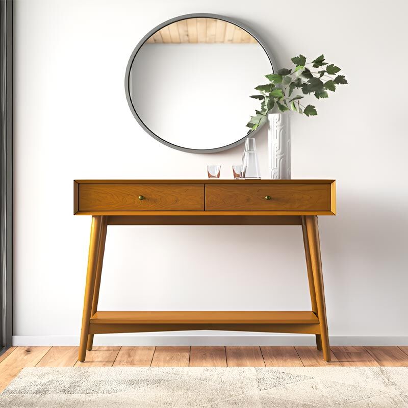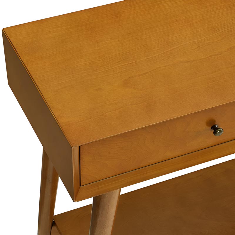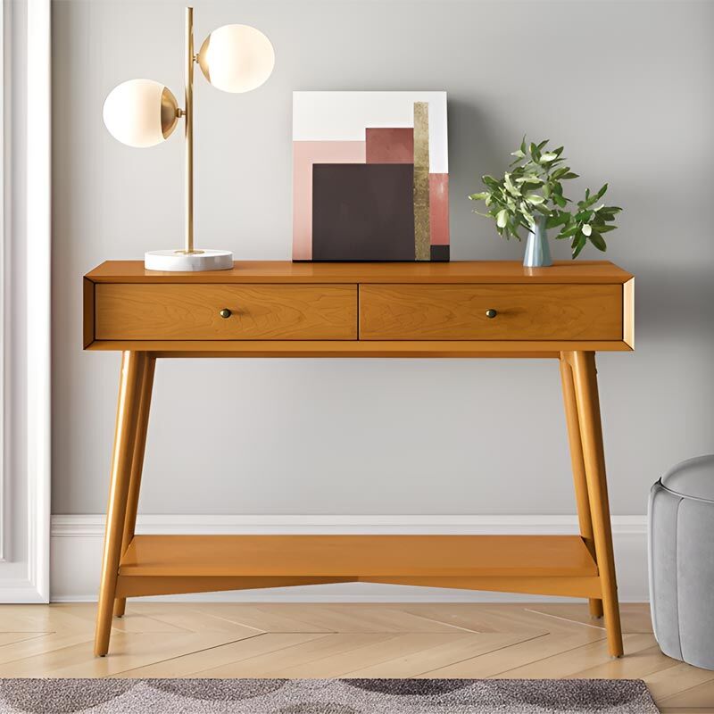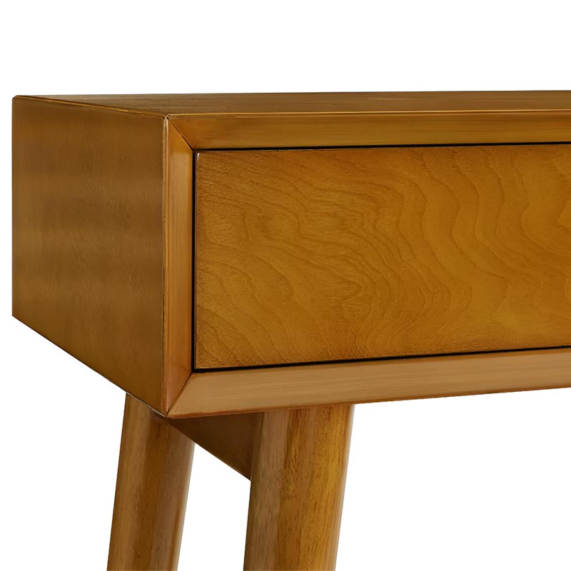 A console table like this one is a versatile touch for a variety of rooms. Crafted from solid wood with a warm neutral finish, this table showcases mid-century-inspired style