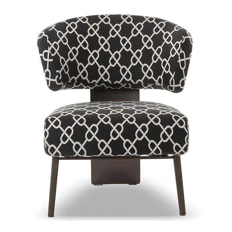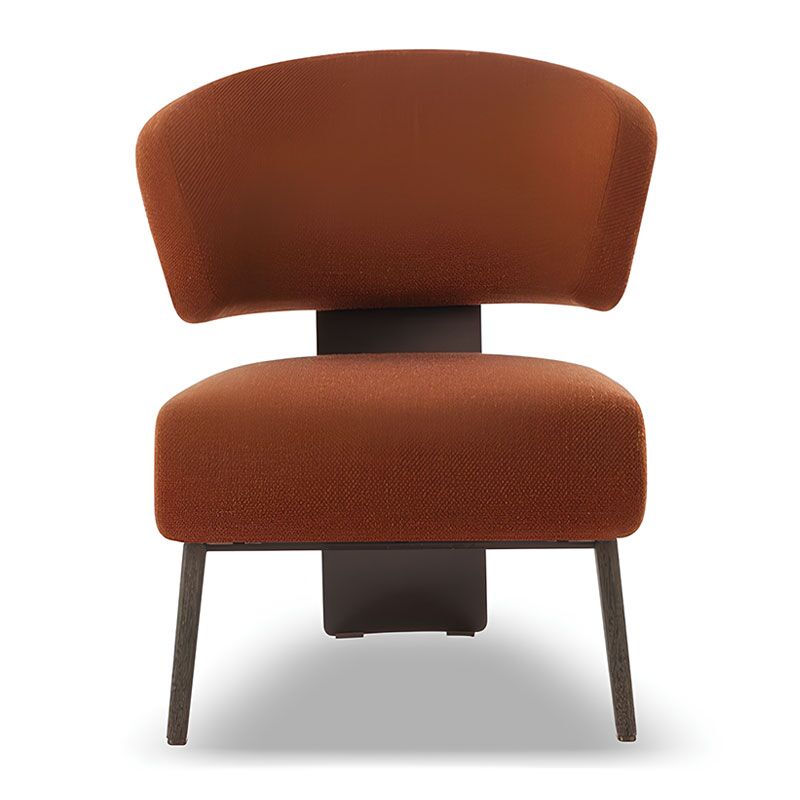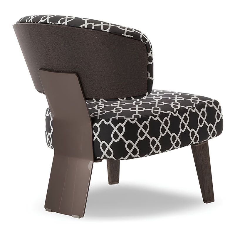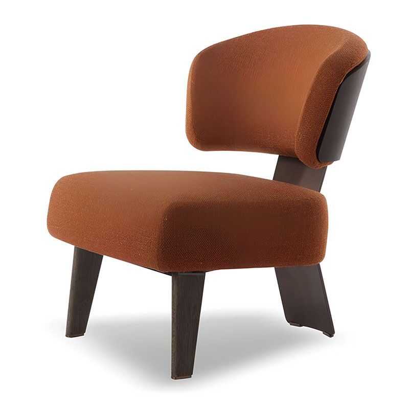 Echoes of modernism for this armchair marked by the juxtaposition of the padding of the seat and the linearity of the laminated wood backrest, parabolic shape continues through the entire piece into the back feet.