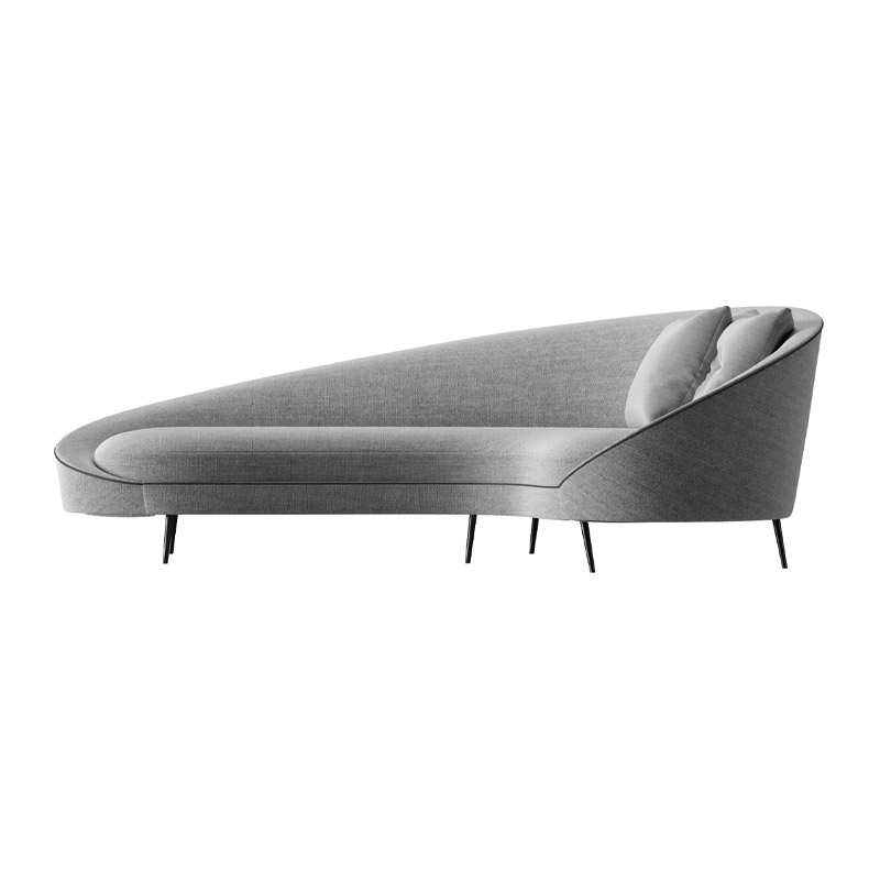 The sofa boasts a sturdy internal frame, enveloped in a sleek metal exterior, all adorned in luxurious upholstery.