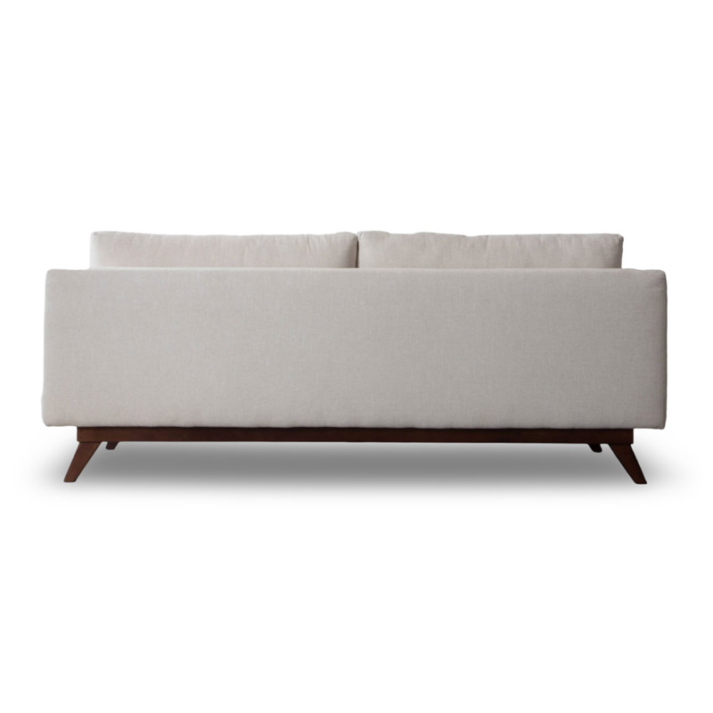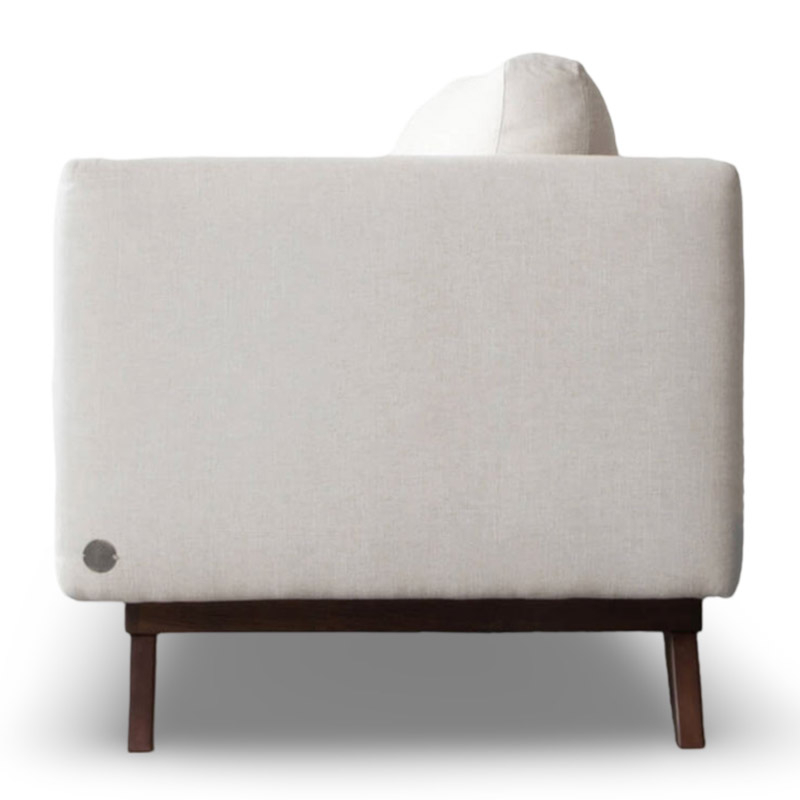 The internal framework of the sofa is crafted from the finest Season Pinewood and Plywood. The exterior boasts a plush foaming and upholstery, tailored to your selection. The base, a sturdy Ashwood, is adorned with a lustrous Melamine polish, enhancing its elegance.