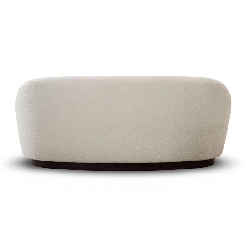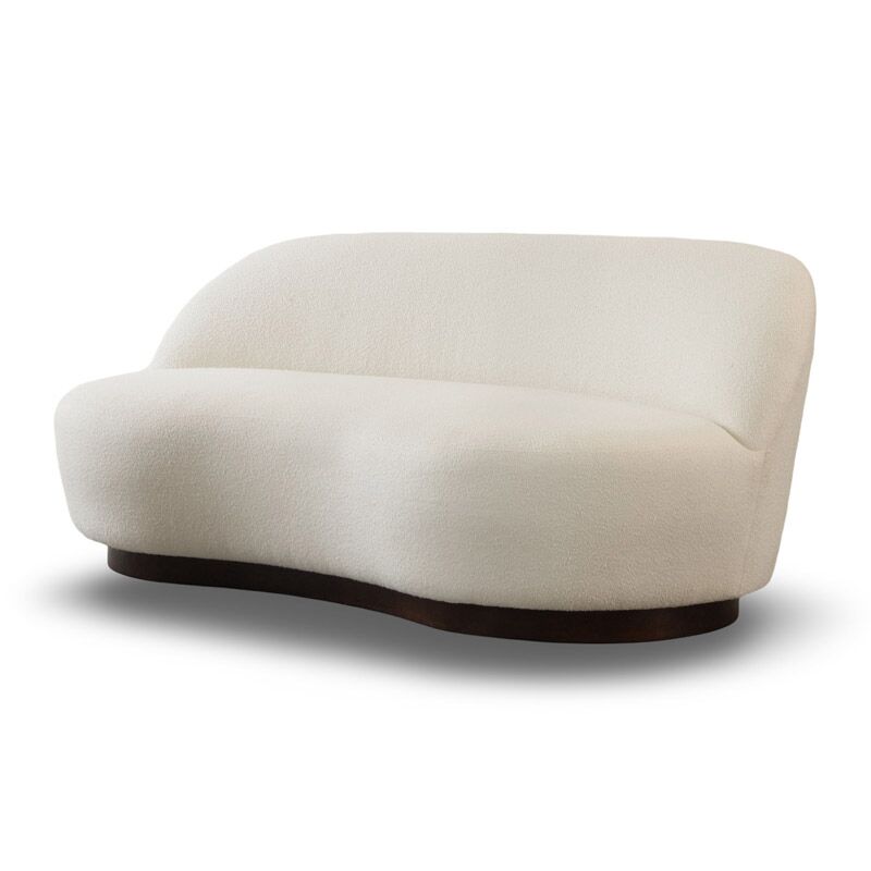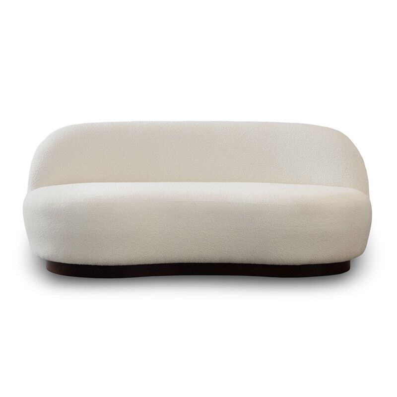 The sofa is designed to complement the human body’s shape, featuring curved lines and deep seating for comfort and encouraging conversation with its smooth, sculptural appearance.