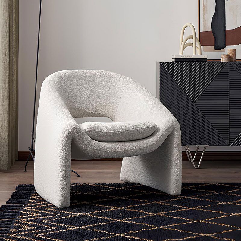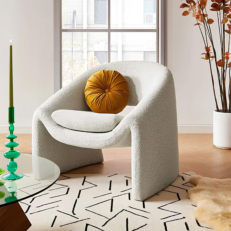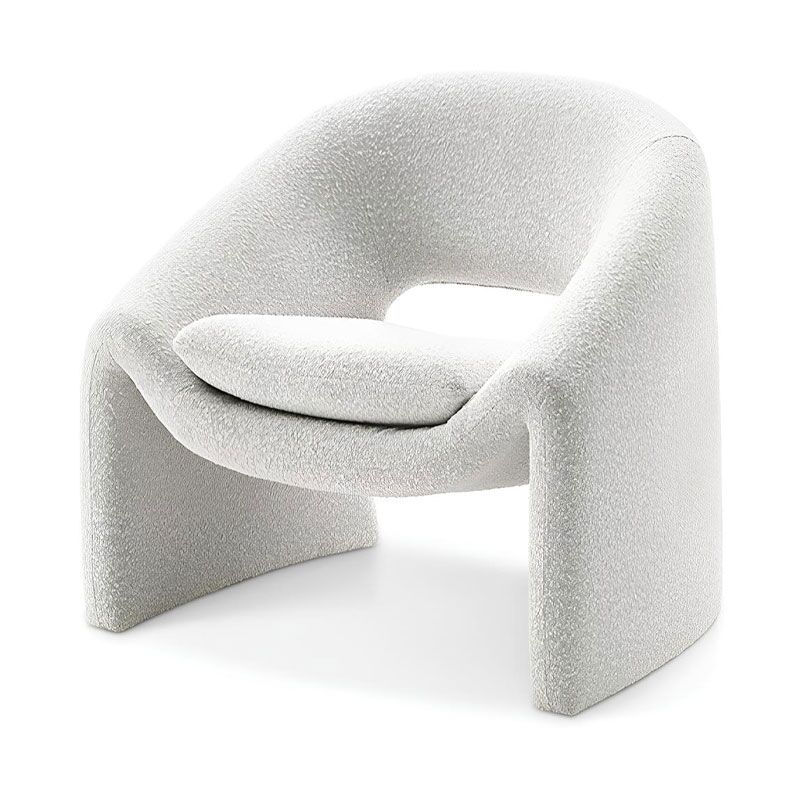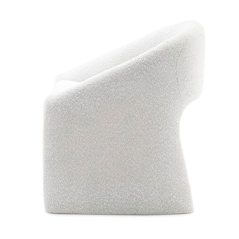 Sculptural silhouette is upholstered with a thick comfortable bouclé, making it a go-to piece to enjoy a cuppa. The elegant design makes it perfect for any lounge area.