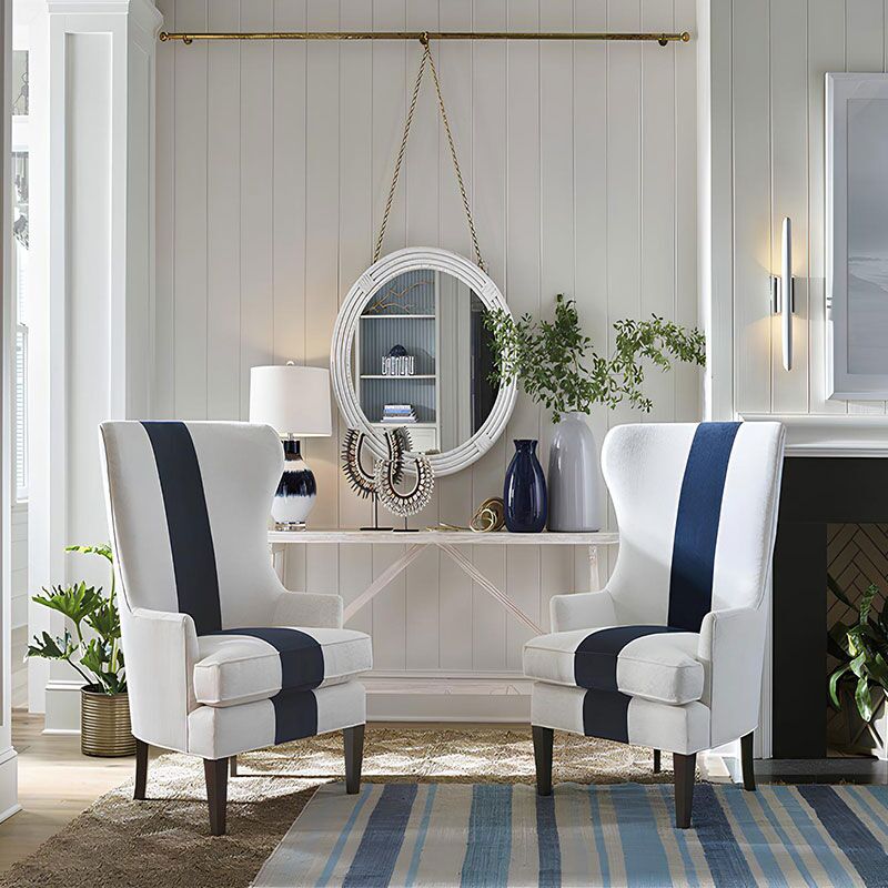 Regal and eye-catching, the Surfside Wing Chair adds unmatched refinement to living spaces with its tall winged back and sleek tapered legs.
